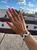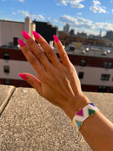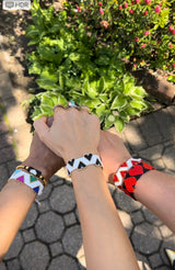 Hand-Crafted Miyuki beaded heart bracelet. Adjustable cotton string tie. Comes in 3 fun colorways.