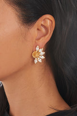 Pretty as a lotus flower, these studded earrings are a great way to spice up an outfit and be subtle at the same time. Perfect for days you want a shorter earring. Designed with 6 marquis Swarovski crystals on each side centered with a vintage inspired golden knot. Create a luxe look that speak to your personal aesthetic & lifestyle. Wear them with a Tee shirt & jeans or dress up for cocktail hour. Perfect travel accessory. Sail away in these beauties.