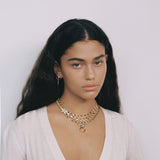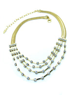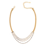 Annabelle is designed with 4 rows of antique gold plated Swarovski chain. Snake chain back. This necklace really puts shine in your wardrobe. Beautiful with a blouse and layered with Shai for a dressier look. Keep it cas with a Tee.