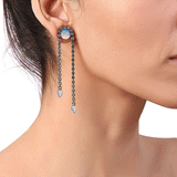 Clear Swarovski crystals drape a round opal center with double mini teardrops. This earring is sexy and very wearable. Goes well with any hair length and style. Extremely light weight and comfortable. A great item to take away with you on vacation!