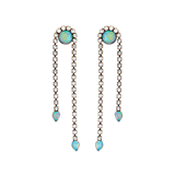 Swarovski crystal, simulated crystal opal, plated brass, surgical steel posts.
