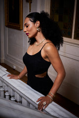 The Leon necklace is a simple beauty. The fishbone detail together with the delicate row of Swarovski crystal is elegant & artful. A clean, classic silhouette that sits gracefully on your collar bone. A perfect every day necklace to style up your outfit. This piece is extremely versatile for casual days or dressing up for a more glamorous look.